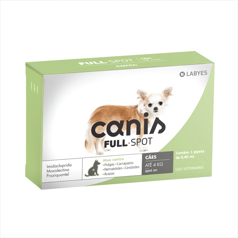 Com um estilo neutro e direcionado para divulgação de produtos ou serviços, queremos apresentar o Canis Fullspot até 4kg/0,4ml, um produto indispensável para quem tem um cãozinho de pequeno porte.